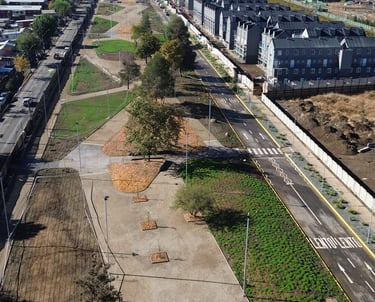 Construcción íntegra de Parques y Plazas, considerando Riego, Paisajismo, Iluminación y Equipamiento para el disfrute público.